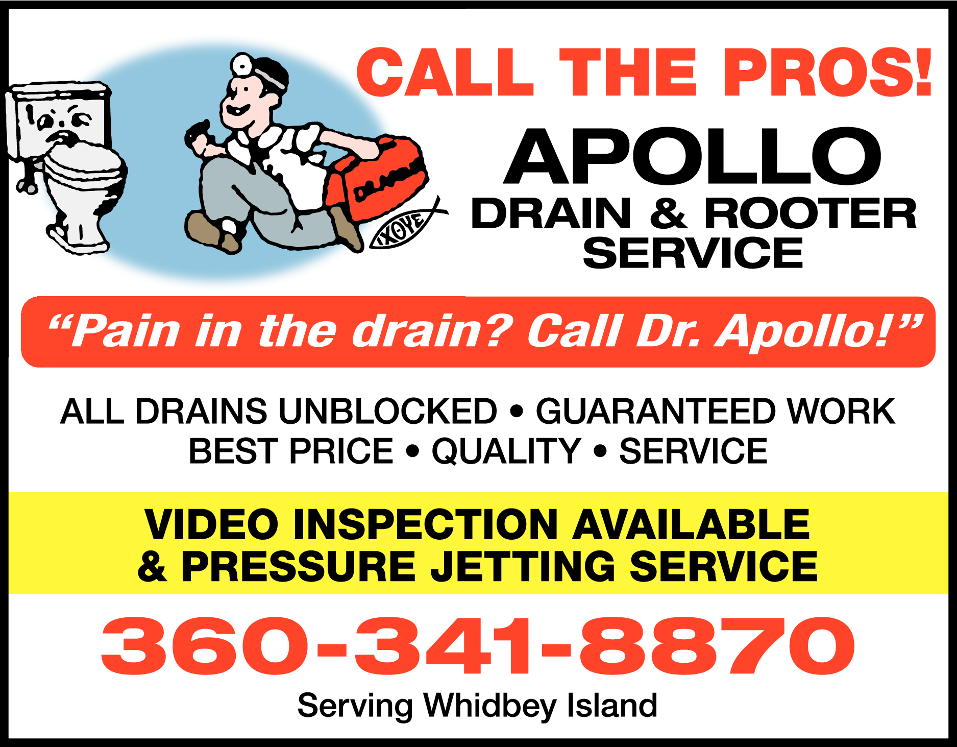 Serving the Whidbey Island area, we are just a phone call away. When you're experiencing trouble with your drains, don't hesitate to call the pros at Apollo Rooter Service. Dial 360-341-8870 to schedule an appointment or seek emergency assistance. With our top-notch service, you can say goodbye to drain problems once and for all.