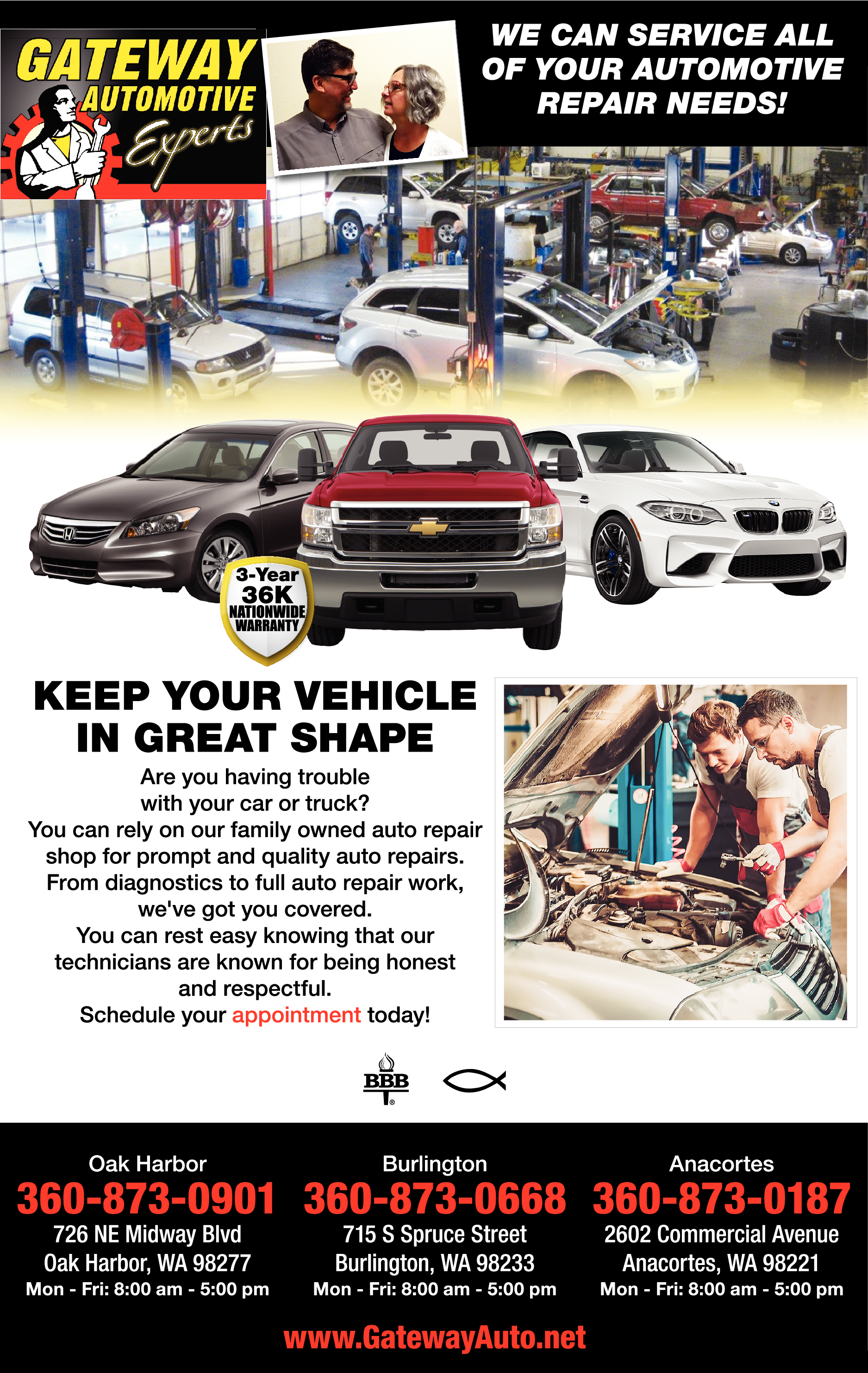 Names and Numbers Verified Auto Repair Brake Service Auto Transmissions Repair Tire DealersAuto Repair in Mount Vernon, Oak Harbor, and Sedro-Woolley, WA Professionals in Auto Repair If you need auto repair in Mount Vernon, Oak Harbor, or Sedro-Woolley, WA, call our professional team at Gateway Automotive Experts. Our ASE-certified technicians are ready to bring you…